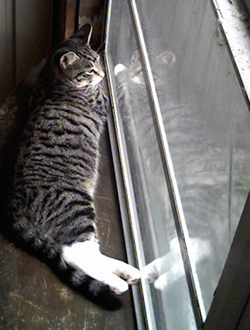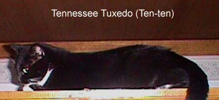 This is Tennessee Tuxedo, or Ten-ten. She likes to ambush other cats at the cat door.