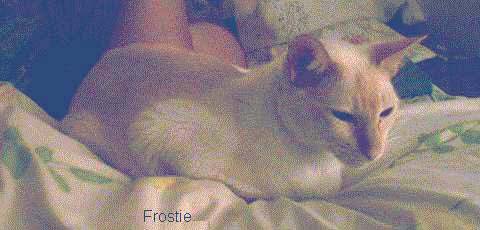 This is Rosa Lyssa. She tolerates Patty, but she's really a man's cat. She's our senior cat, and Kira's mom.