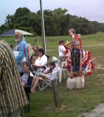 | Trying out the Eagle Dance regalia | Waiting to dance at the Overhill Indian Nation's gathering |
