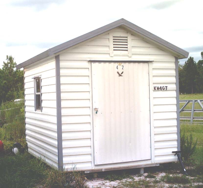 This is the Hamshack. We put the shed in when the house was being rebuilt from Hurricane Jeanne. The deal was, it would become the home for much of my Ham radio equipment when the house was finished.
