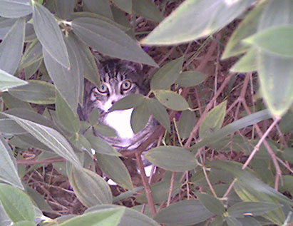 Kira Jean (pronounced Zhahn as in the French) is a big cat, but he has a funny little meow. He's not so tough, either.