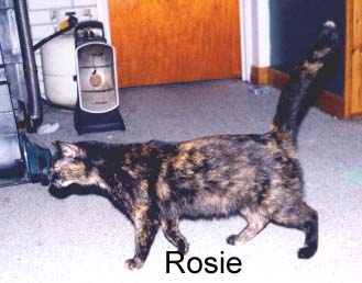 This is Rosa Lyssa. She tolerates Patty, but she's really a man's cat. She's our senior cat, and Kira's mom.